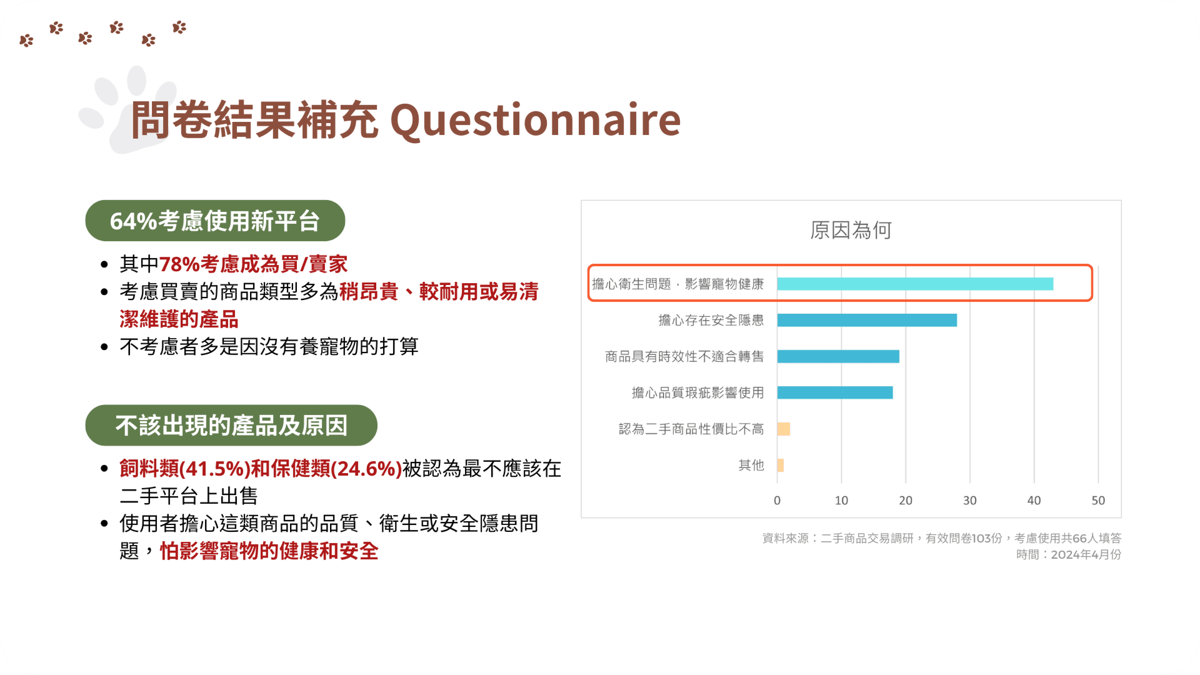擔心二手交易與一般線上交易可能有不同的使用者行為、態度或使用情境,為了更貼近使用者的需求與想法,我們進行問卷調查,希望掌握飼主對二手交易與線上購物的反饋和意見。