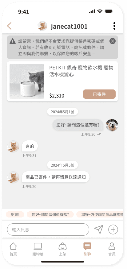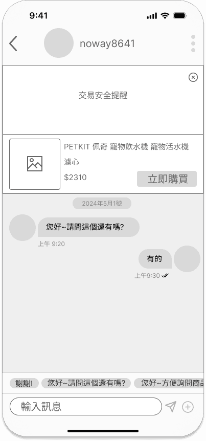 點擊我想要的按鈕後,直接進入聊天畫面,增進溝通,減少交易糾紛