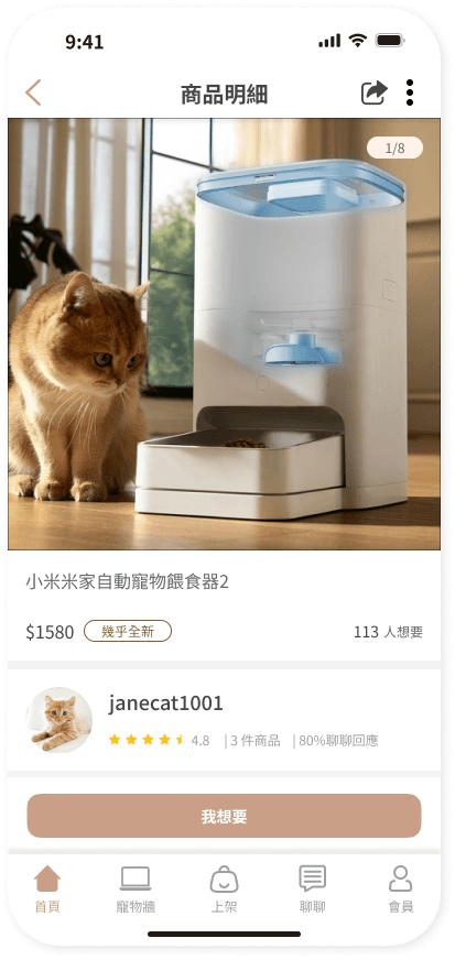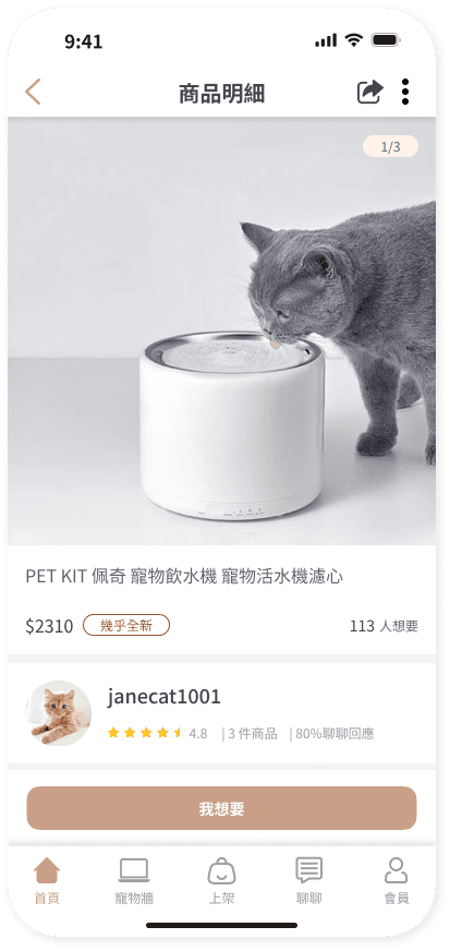 2.快速、方便且安全的上架購買流程,能使工作忙碌且工時長的現代人能減少購物所花費的時間,擁有更多下班後的自由時間,也讓想賣出寵物用品的人能快速刊登商品甚至迅速賣出,減少面交所花費的時間與精力,不再因繁忙而無法出售家中堆積如山的寵物用品。