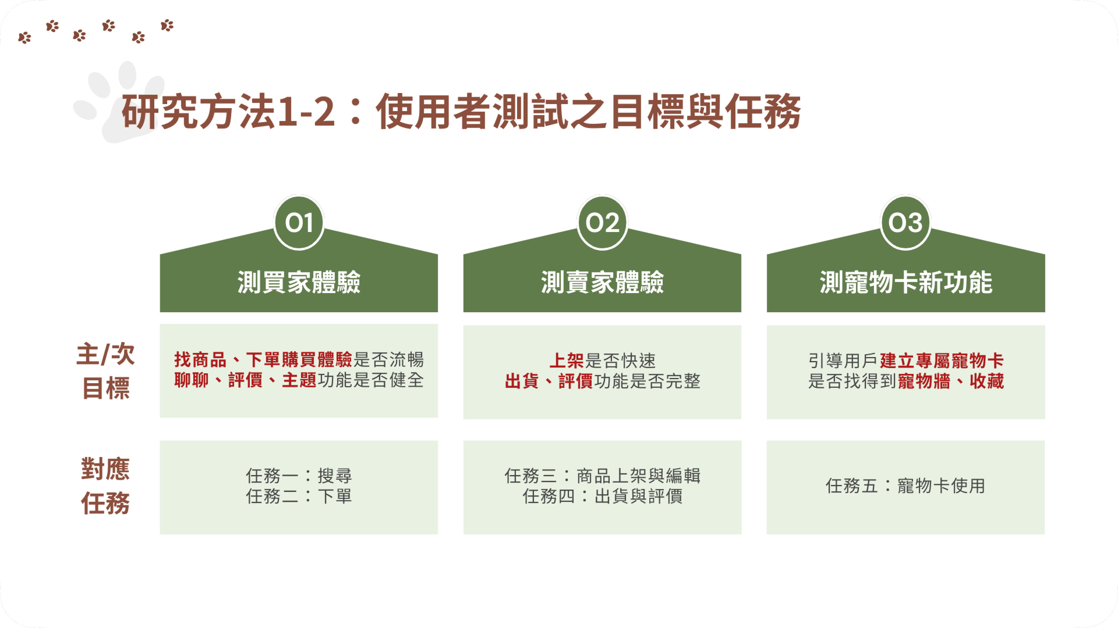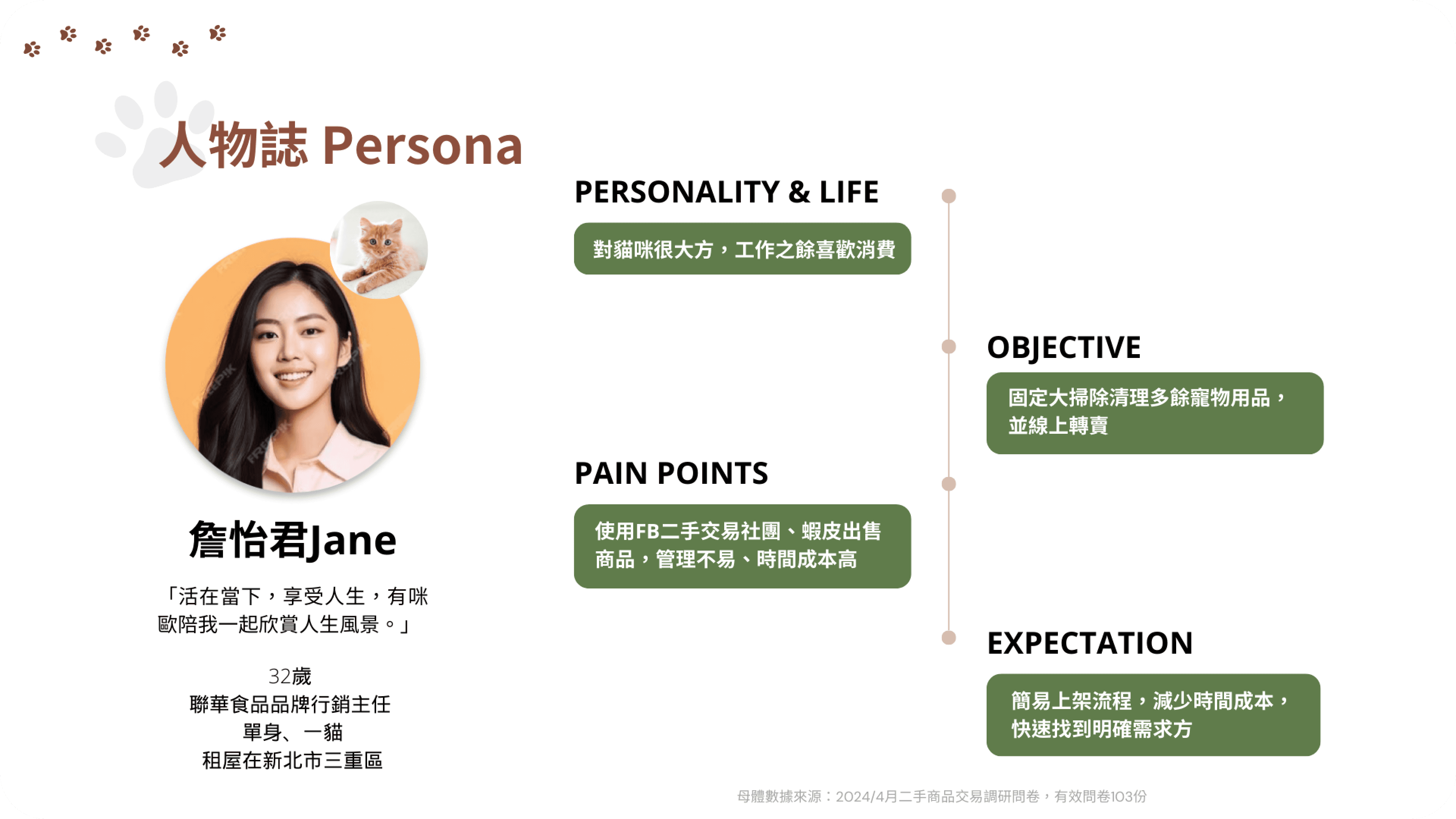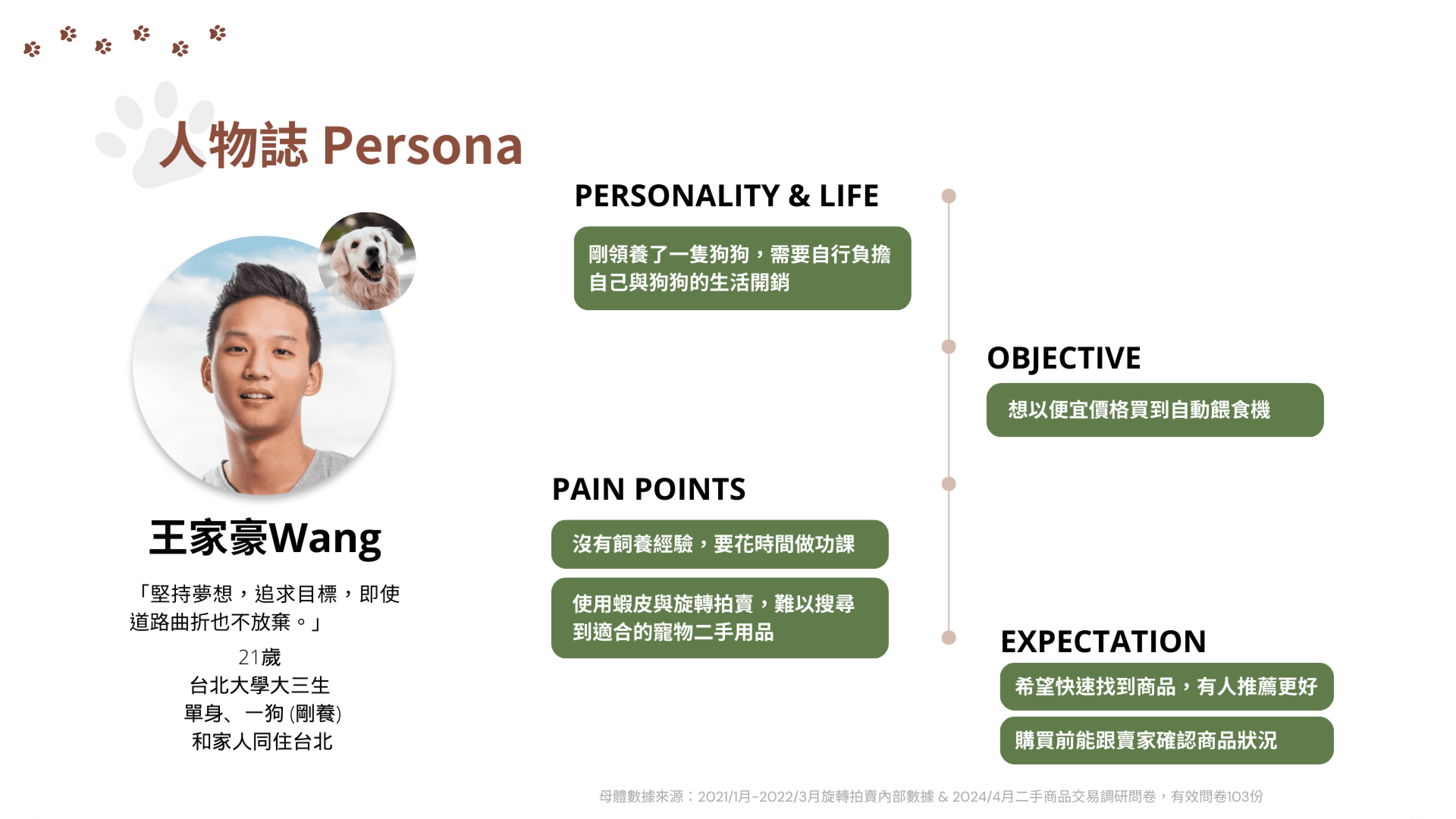 為了聚焦寵物二手用品交易平台的設計,我們對此定義問題,同時持續進行研究,希望能釐清飼主購買寵物用品的體驗,並掌握二手交易市場的趨勢。
