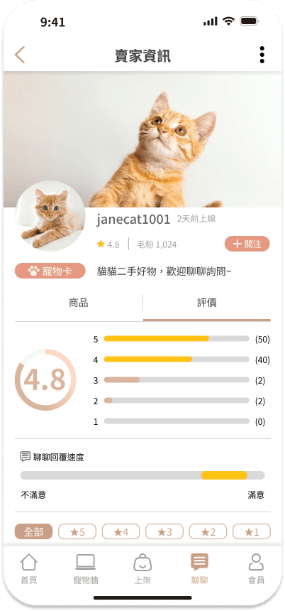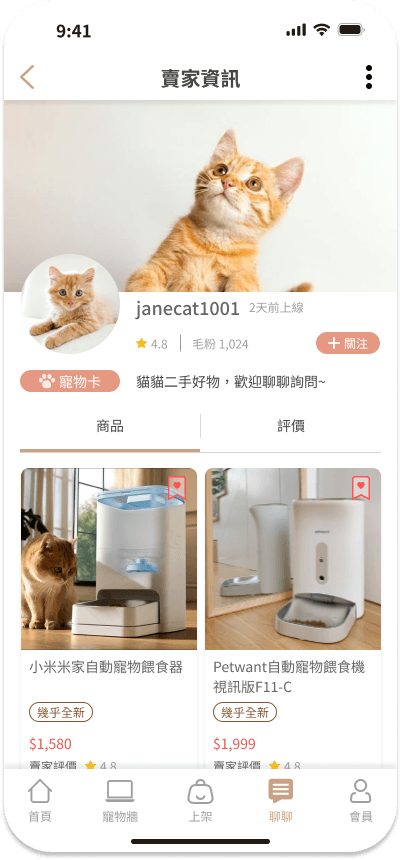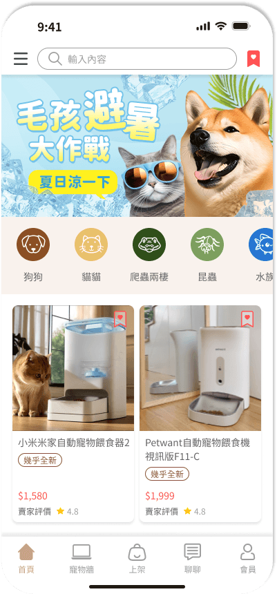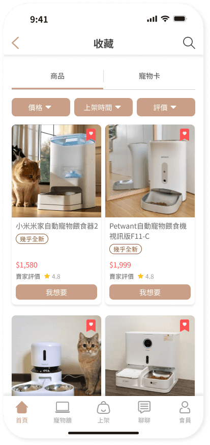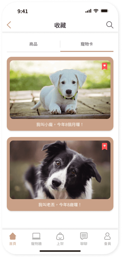 原先右上角的愛心icon容易讓人誤以為是商品的收藏功能,而非寵物卡的收藏,因此我們更換另一種收藏icon做出區隔。