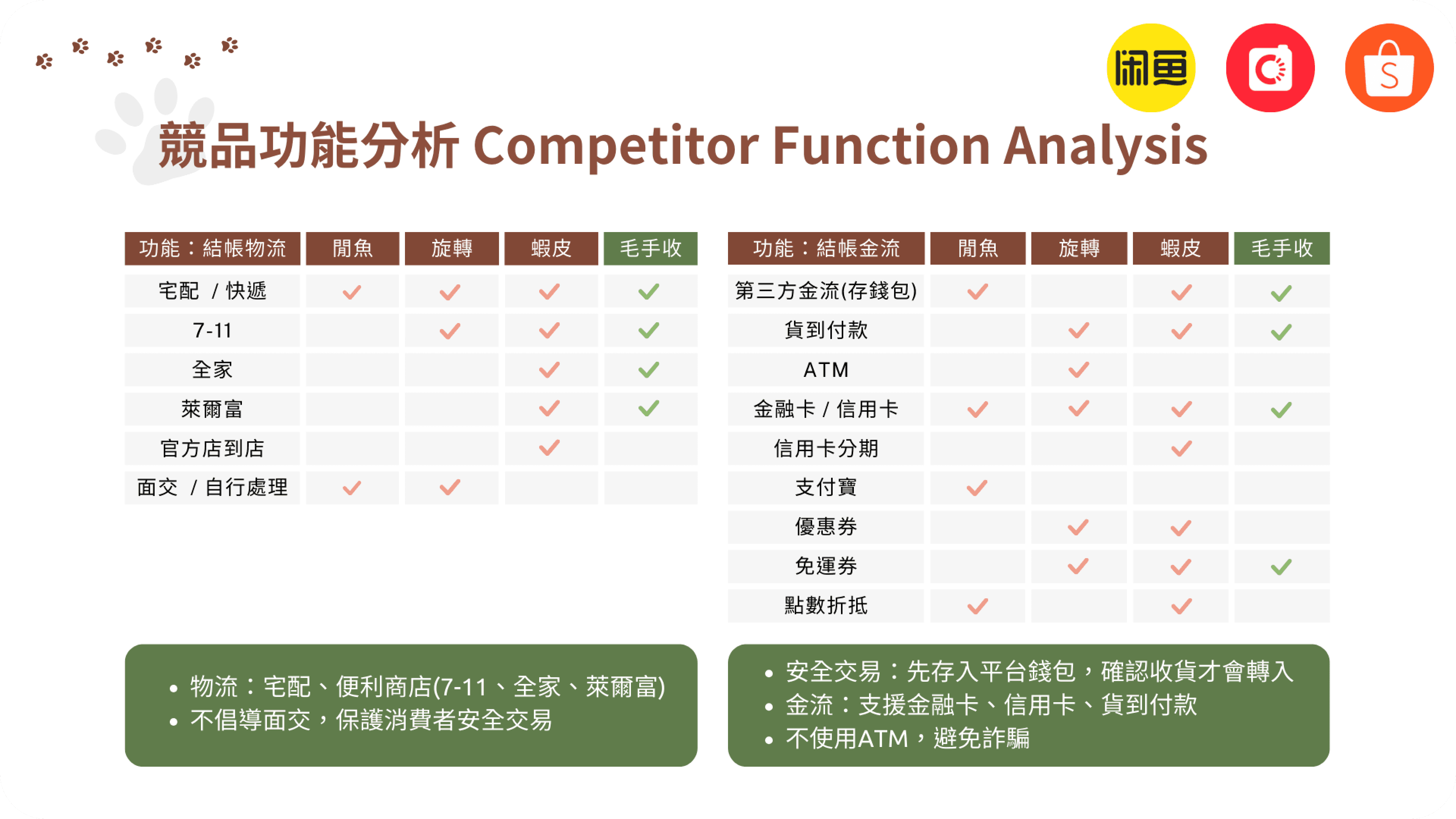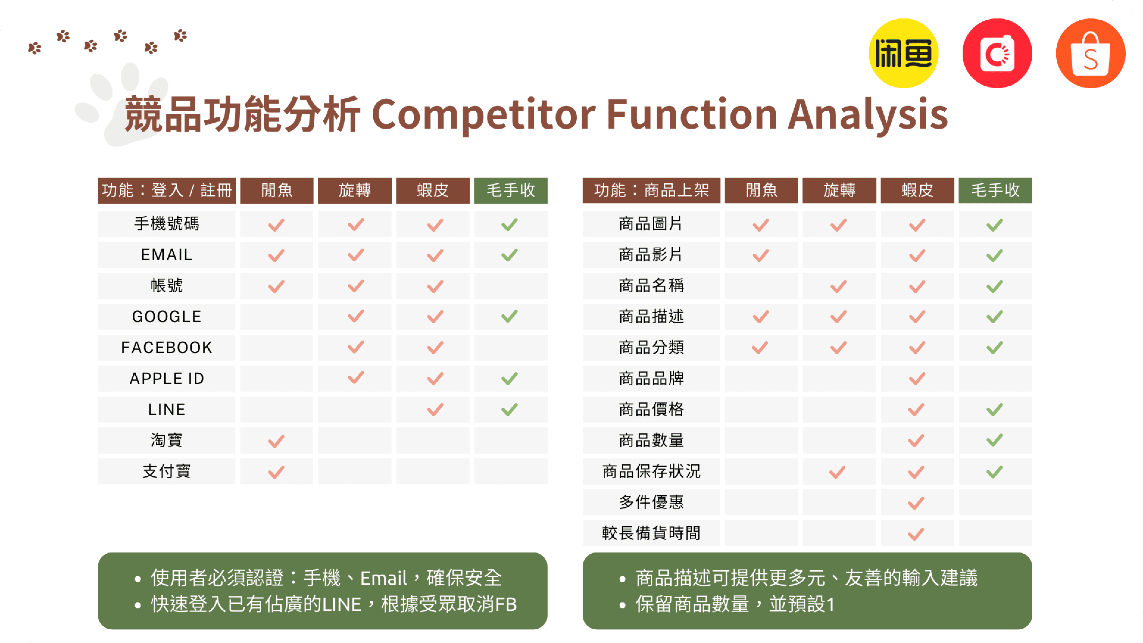 為了確保產品能追上甚至領先市場,以競品功能分析做為產品功能發展的參考,並輔助我們確立MVP的輪廓。