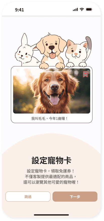 此功能更是精準推薦的數據來源,針對飼養寵物類型推薦相關產品,也規劃寵物卡為分享、邀請新用戶的媒介,以獲取更多新用戶使用。