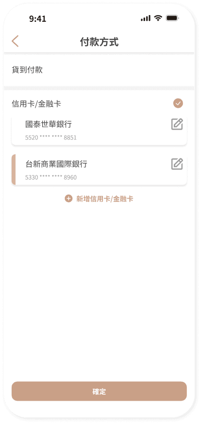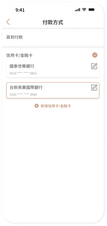 更換支付方式時,使用者反應不確定有沒有選中,因此我們調整被選取的狀態,改成帶有主色的線框包圍選項。