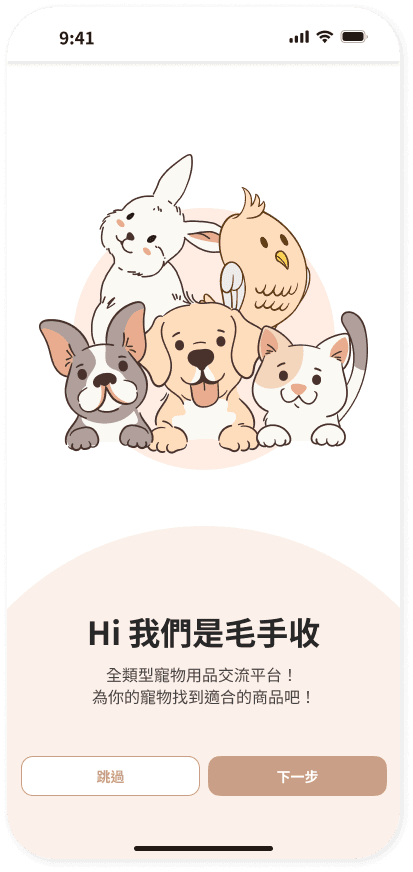 2.社群向發展 : 因為專案時間的限制,寵物卡的設計未能有太多的著墨,我們計劃未來當毛手收累積一定用戶後,可以發展更廣大的社群端,以寵物卡做為寵物飼主的互動媒介,滿足飼主間的交流需求,此外也引入寵物照護的知識,以此結合社群中各飼主所分享的飼養經驗,減輕飼養寵物的新手在照護上的壓力。