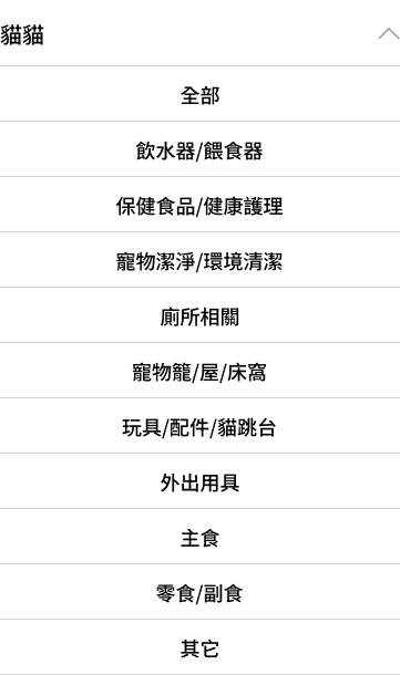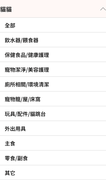 原先的分類選單為了與會員中心的設計一致,以白底色為主,為了解決DM感太重的問題,我們加上底色與寵物圖形稍加點綴,同時也留意避免設計過於花俏影響資訊判讀。